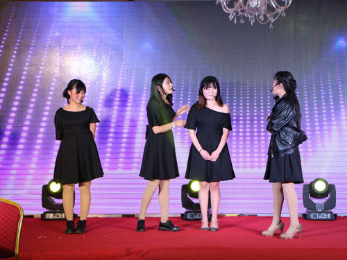 銷售二部的美女們?yōu)槲覀凅@艷開場帥哥美女組合的主持人團(tuán)隊