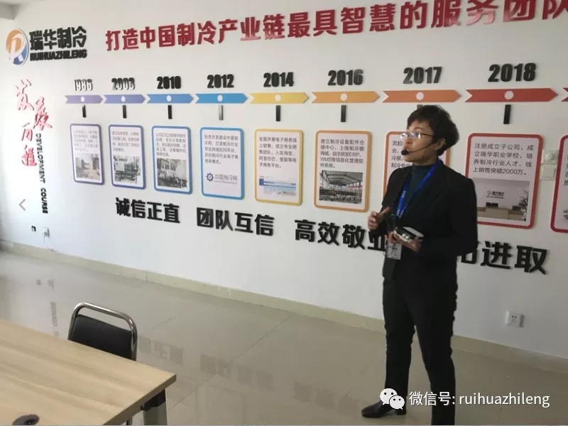 2018年11月24日,為感謝部分客戶、合作伙伴長(zhǎng)期以來(lái)對(duì)瑞華制冷的支持與幫助,瑞華組織瑞華考察參觀團(tuán)一行,參觀考察瑞華廠區(qū)、生產(chǎn)維修車(chē)間,瑞華標(biāo)準(zhǔn)化倉(cāng)儲(chǔ)中心,瑞華職業(yè)技術(shù)學(xué)校及市中心瑞華子公司辦公室,并在藍(lán)海國(guó)際大飯店舉行子公司揭牌儀式,及制冷行業(yè)產(chǎn)業(yè)鏈資源交流生機(jī)大會(huì)。