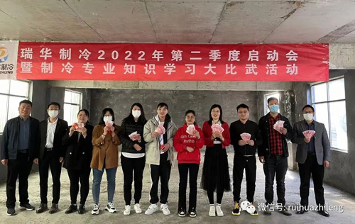 2022年4月16日,春暖花開(kāi)百花齊放,山東瑞華制冷設(shè)備有限公司,在倉(cāng)儲(chǔ)中心新落成的二期倉(cāng)儲(chǔ)內(nèi),召開(kāi)2022年度二季度啟動(dòng)會(huì)暨制冷知識(shí)大比武。會(huì)議表彰了上季度工作突出的家人,對(duì)部分人員進(jìn)行晉升,頒發(fā)了本月度的年功獎(jiǎng)獎(jiǎng)金及為過(guò)生日的家人送上生日祝福與禮物,也為二季度開(kāi)了一個(gè)好頭。
