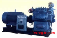 壓縮機(jī)組由壓縮機(jī)、電動(dòng)機(jī)、聯(lián)軸器、控制(自動(dòng)保護(hù))臺(tái)組成, 安裝在同一公共底座上。控制臺(tái)上裝有高壓、中壓、油壓繼電器,保護(hù)機(jī)器運(yùn)行安全可靠。
